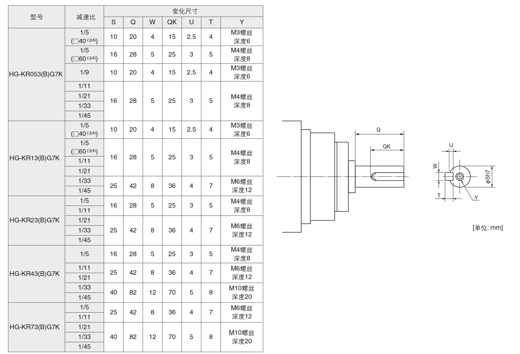 3.未记载的尺寸同附支持高精度装法兰轴输出型减速机(G7)的直轴请参照本产品目录HG-KR_(B)G7外形尺寸图
